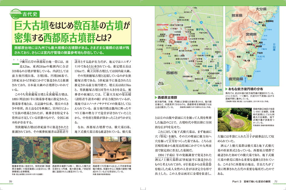 || 歴史編⇒巨大古墳をはじめ数百基の古墳が密集する西都原古墳群とは/領主を転封に追い込んだ延岡藩で起きた山陰一揆とは?