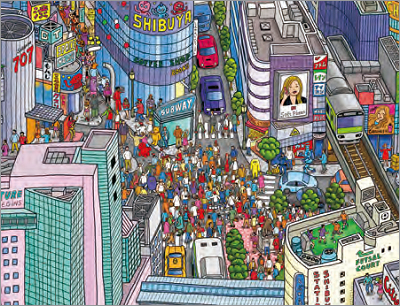 | <にぎやかなまち「渋谷のまわり」> | <楽しいまち「上野のまわり」> |