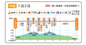従来より登山コースをご紹介していた小冊子では、コースタイムや解説などに加えて高低差グラフや写真を追加したり、日帰り向きのコースか宿泊が必要なコースかなど登山プランをご提案。登山計画に役立つ情報をさらに増やしました。