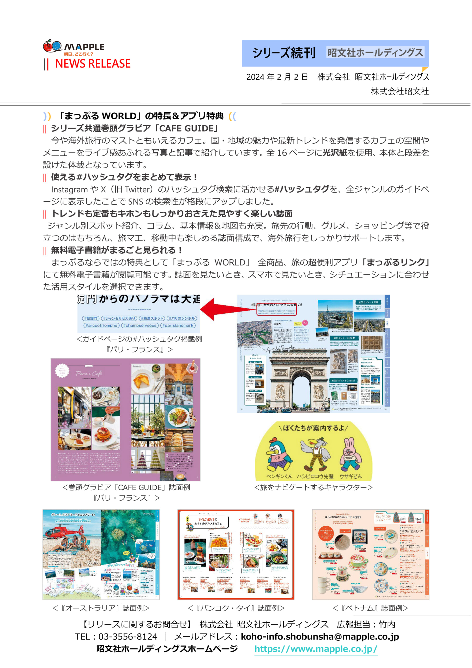 本リリース本文のPDFファイルのご確認・ダウンロードはこちら⇒【リリース】20240202海外新ガイド『まっぷるWORLD』続刊4点発売.pdf