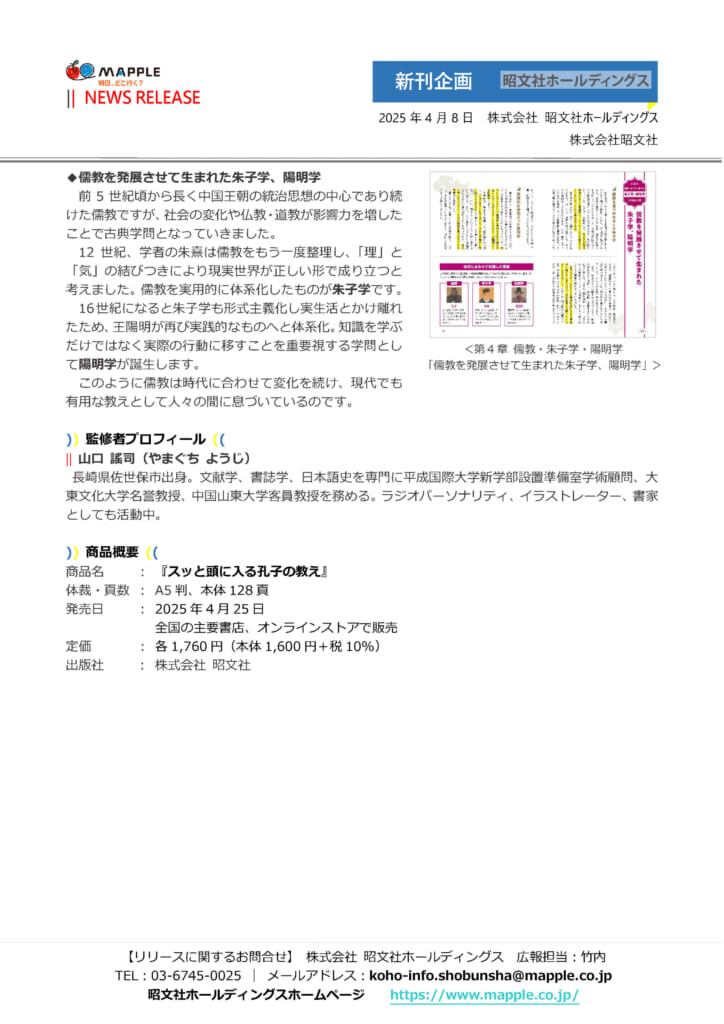 本リリース本文のPDFファイルのご確認・ダウンロードはこちら⇒【リリース】20250408『スッと頭に入る孔子の教え』発売.pdf