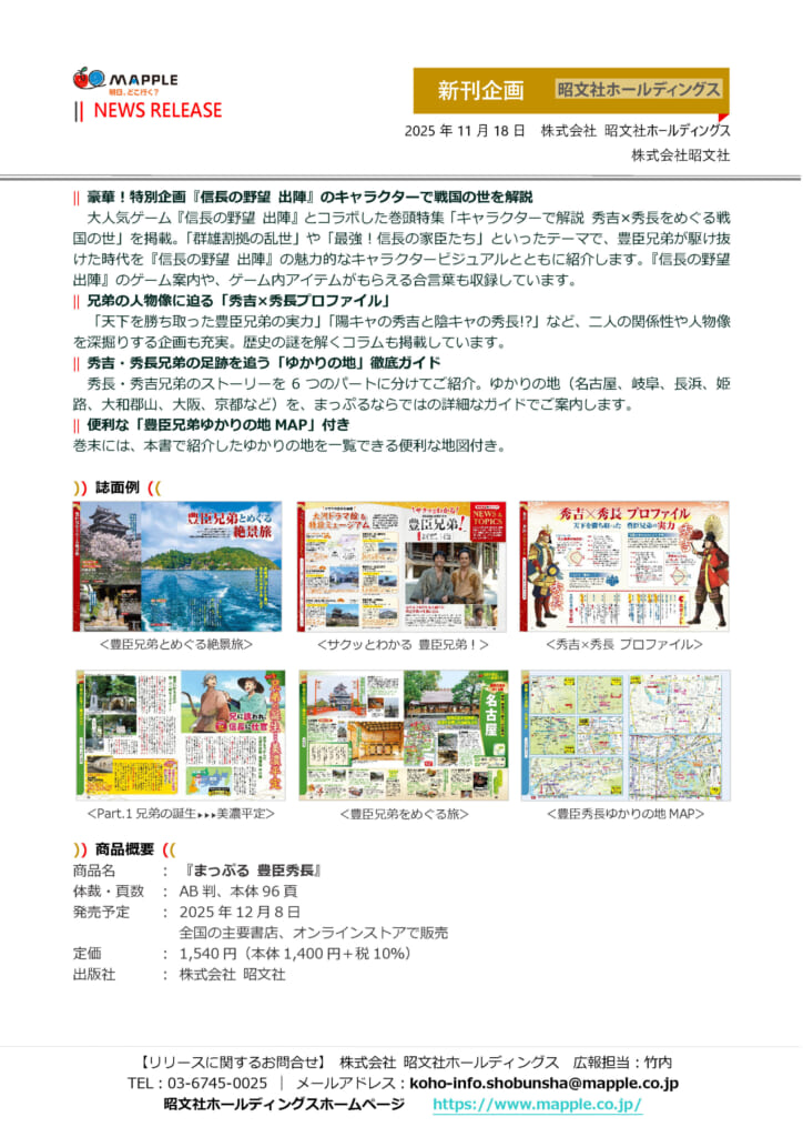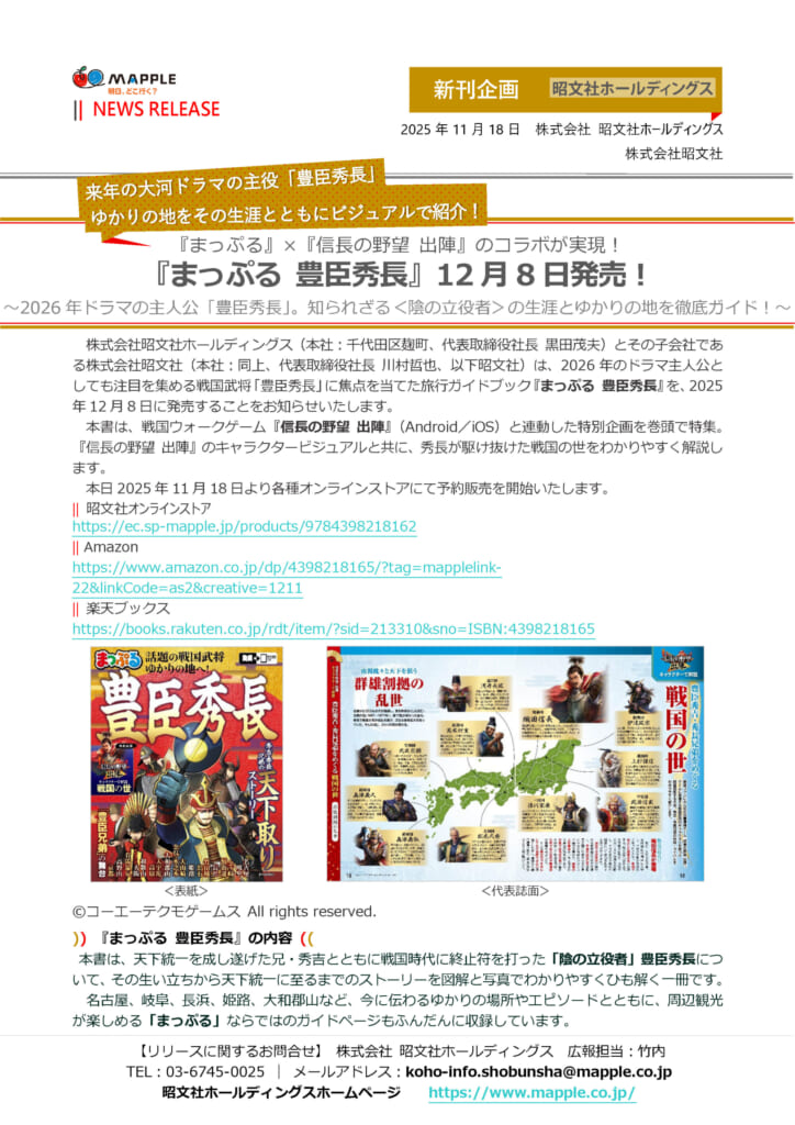 本リリース本文のPDFファイルのご確認・ダウンロードはこちら⇒【リリース】20251118『まっぷる豊臣秀長』発売.pdf