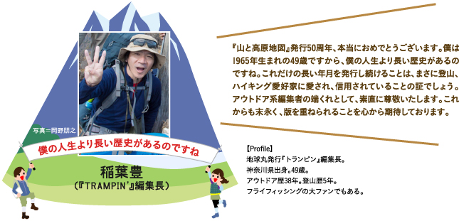 各々の活動するフィールドは違っても、山を愛する気持ちは皆同じだということを、50周年を機に、再確認することができました。これからも『山と高原地図』は、登山者の安心で安全な登山を全力でサポートし、また登山業界全体の盛り上げに貢献していきたいという想いを強くしましたよ。