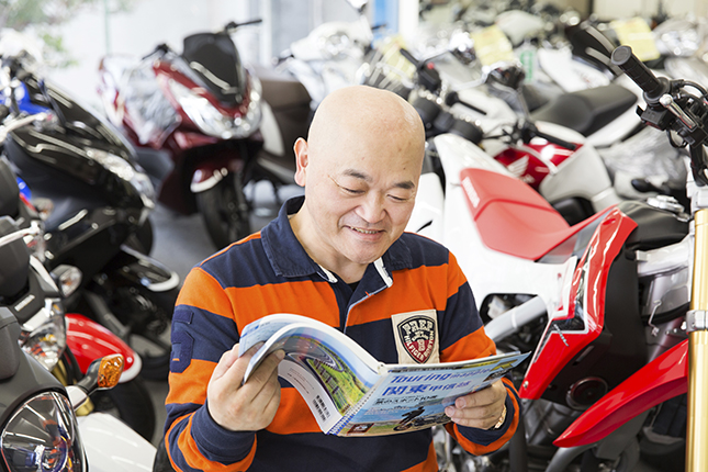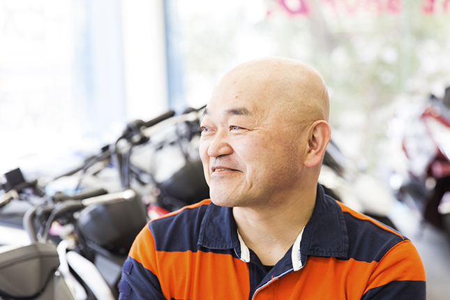 新宿のバイクショップB!は高橋名人の行きつけ。