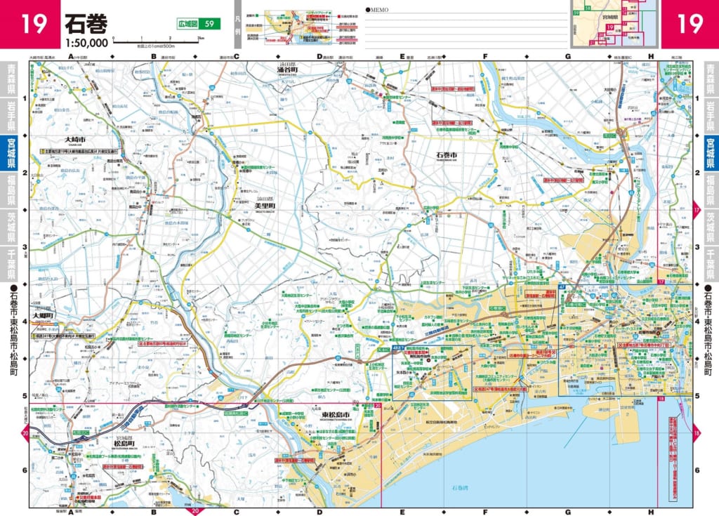 都市地図の作業が落ち着くと、岡口を中心とした地図編集部は、被災情報、特に津波の遡上した範囲や、避難所、仮設住宅などが記載された地図の企画に入ります。その理由も、岡口の経験によるところが大きかったといいます。