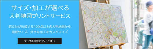 ドラマ『BG~身辺警護人~』でも使用していただいたマップル地図プリント、実はとても実用的なんです。市販の大判地図を拡大サイズやラミネートなどに簡単加工できる上に、オンデマント印刷形式なので低価格・短納期。これまで需要が多かった「もっと大きなサイズの地図が欲しい」「折り目のない地図が欲しい」などのご要望に応え、より安く、早く提供できるようになりました。
