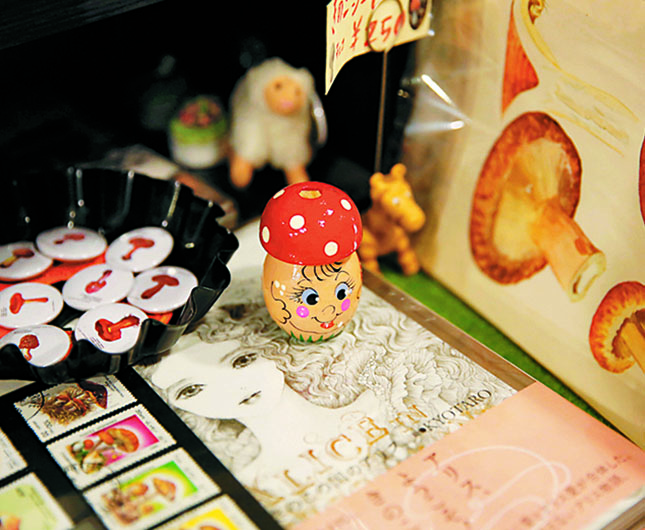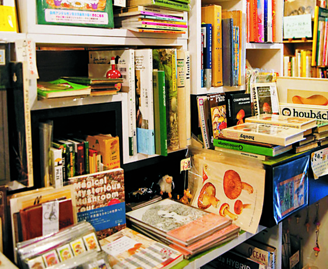 店の一角を占めるキノコの図鑑や絵本はオーナーの奥様の趣味だそう。キノコが登場する絵本や画集から、図鑑や文献まで、キノコ好きな方なら一度は訪れてみてはいかがでしょうか?